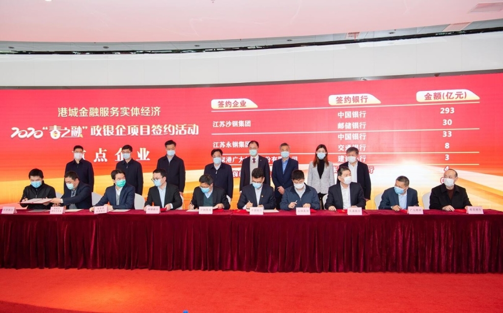 2月24日下午,張家港市舉辦港城金融服務(wù)實(shí)體經(jīng)濟(jì)2020“春之融”政銀企項(xiàng)目簽約活動(dòng)。集團(tuán)第一副總會(huì)計(jì)師尉國(guó)代表沙鋼集團(tuán)與中國(guó)銀行和郵政儲(chǔ)蓄銀行分別簽訂293億元和30億元的授信項(xiàng)目。